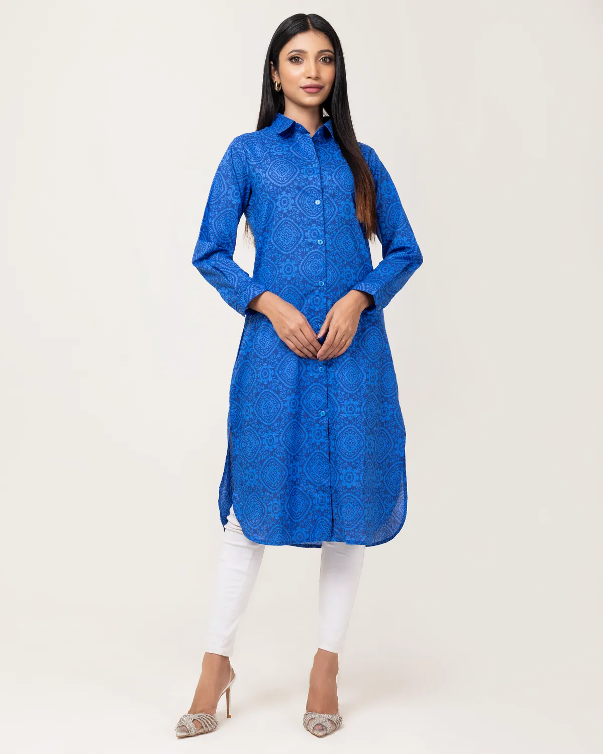 Ladies Kurti Royal Blue Traditional Print
