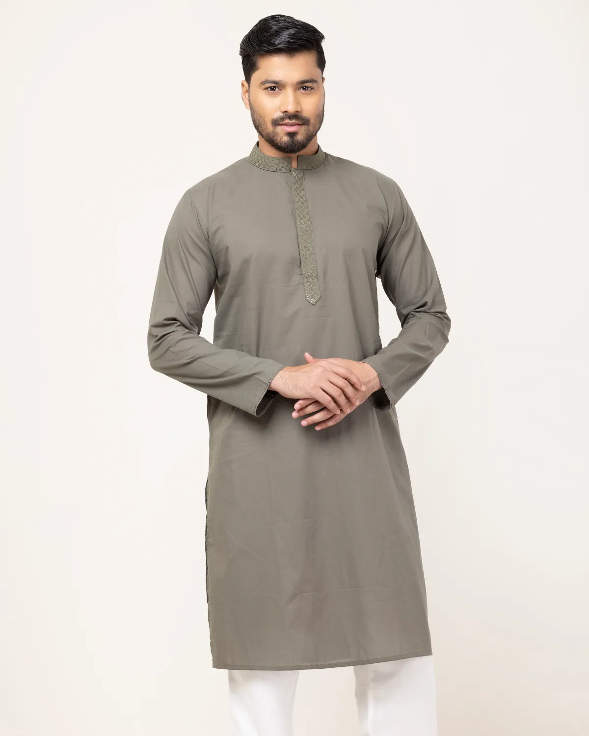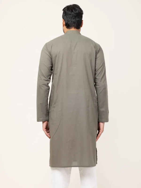 Olive Contrast Embroidery Panjabi