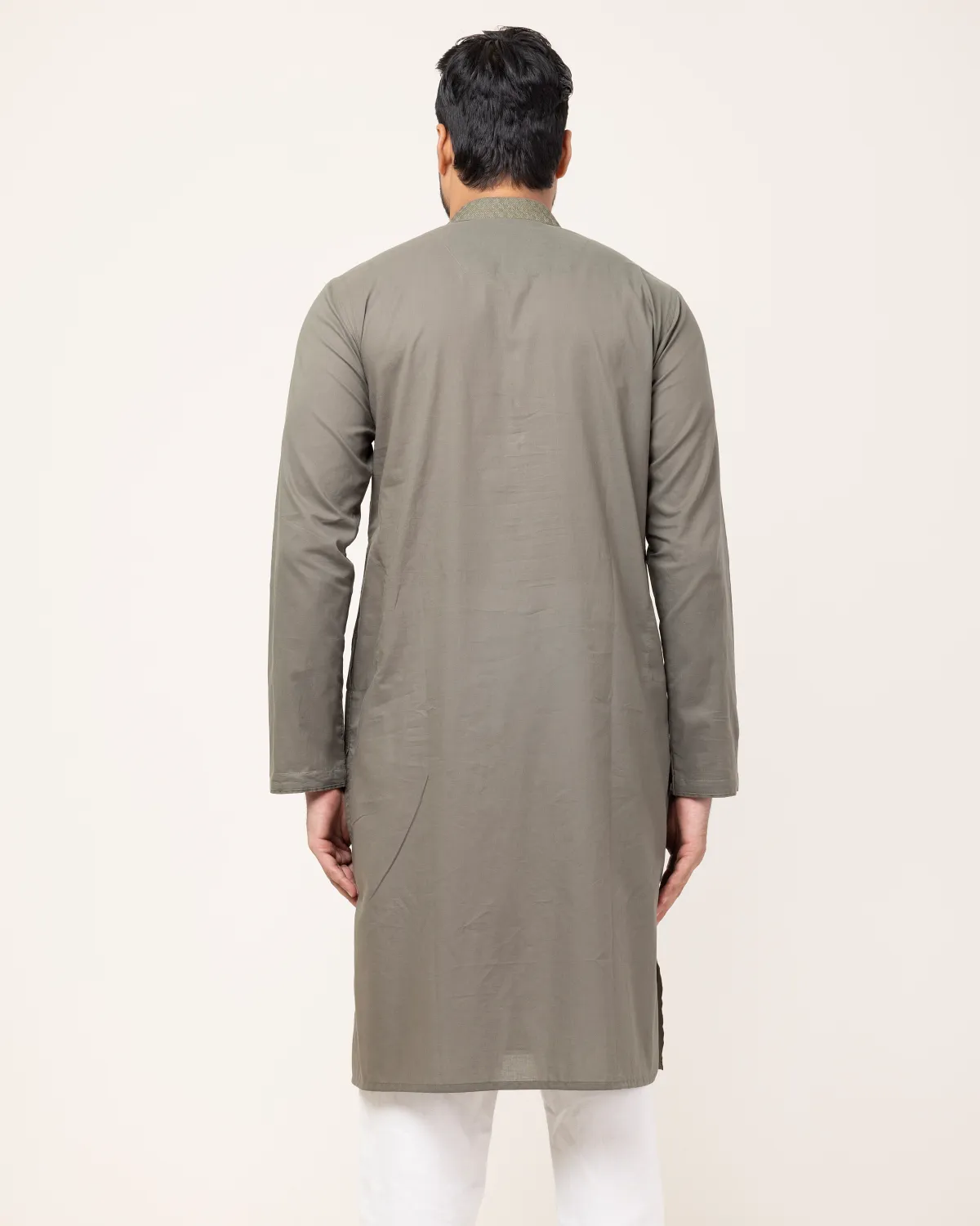 • Olive Contrast Embroidery in Collar & Plate.